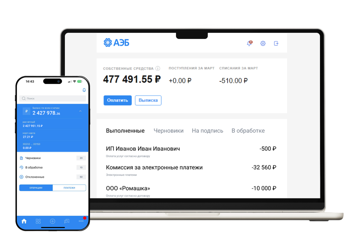 Откройте счет и начните управлять финансами бизнеса в мобильном приложении или в веб-сервисе